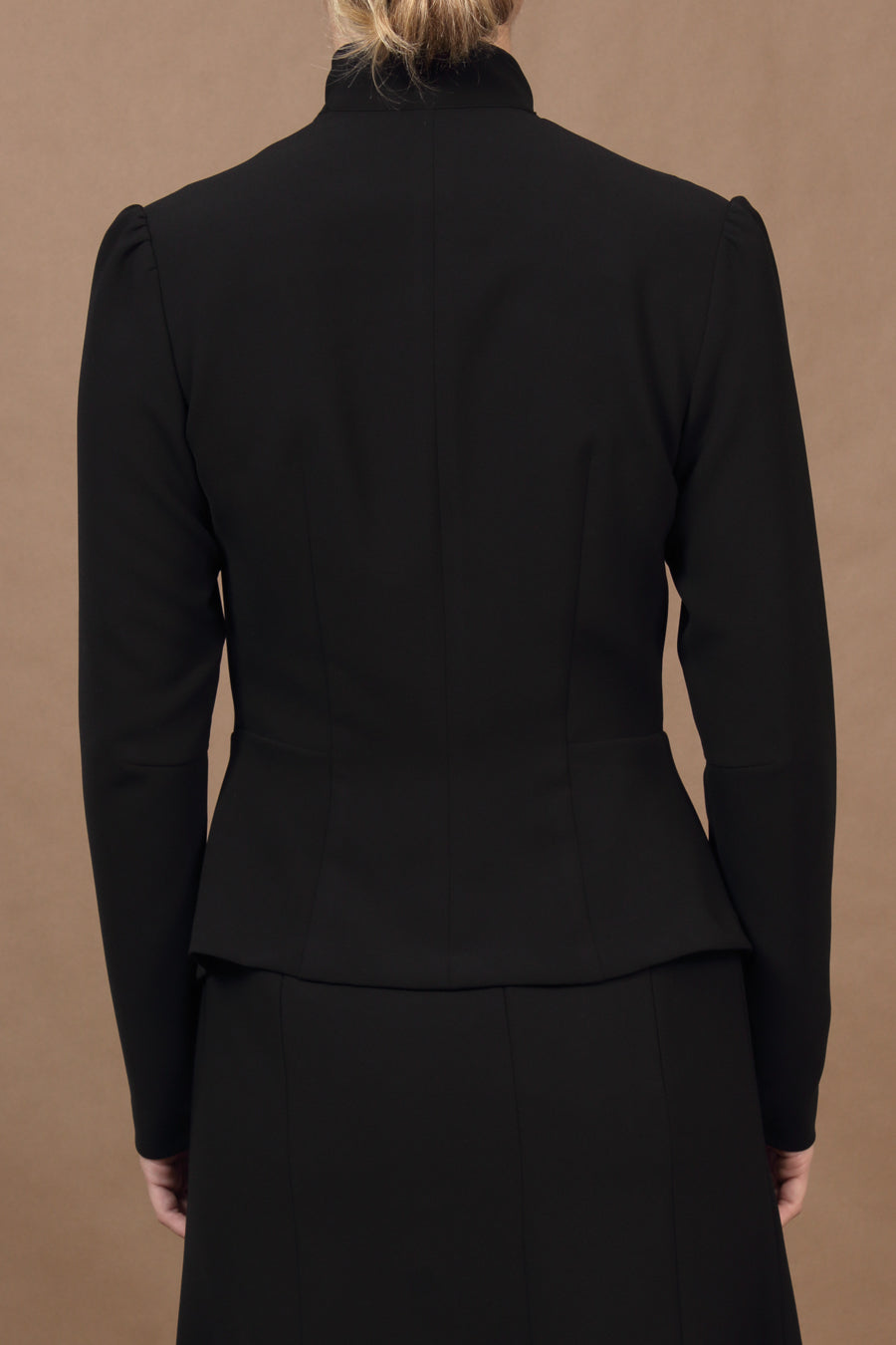 An absolutely stunning fitted jacket with a tie at the neck. Swoon!