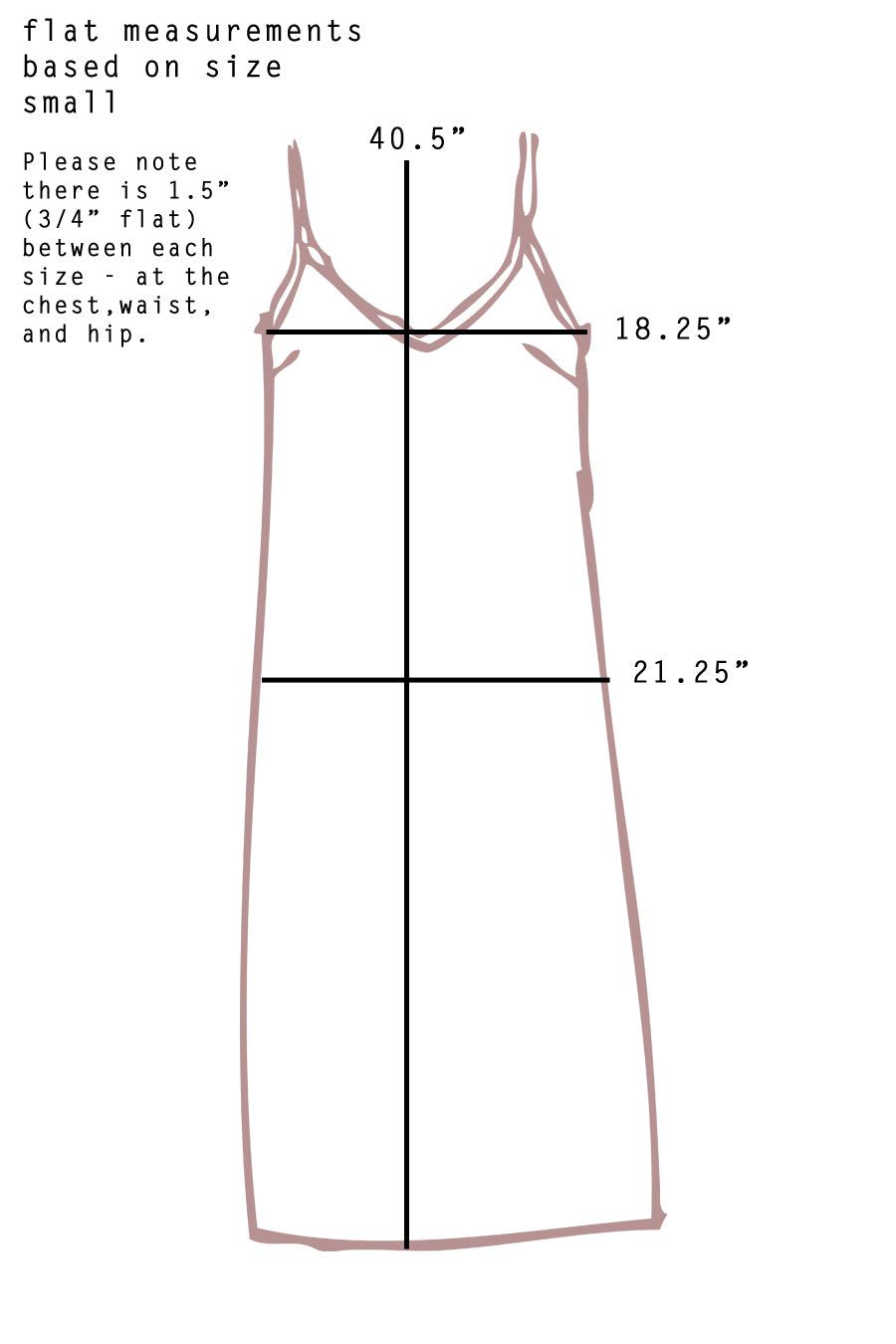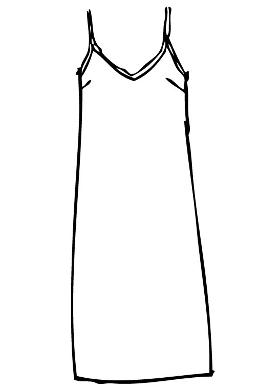 This skimpy slip hangs straight with a wide open neckline. We like it over a top.