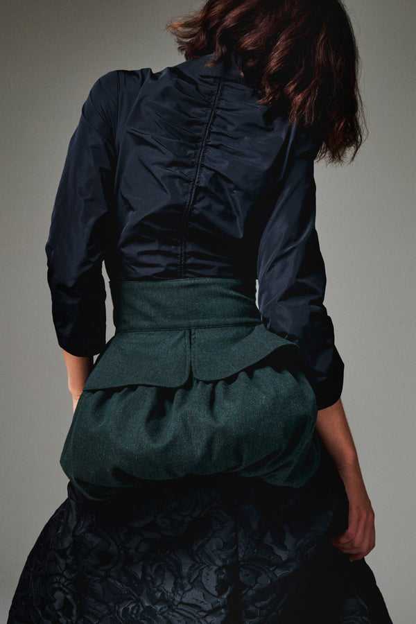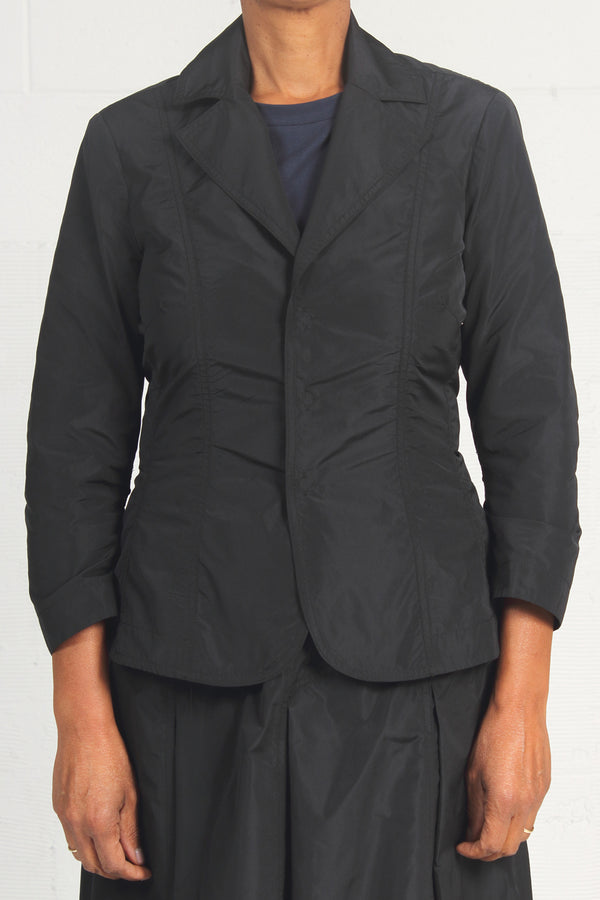 We had a bit of black crush kicking around so we decide on two pieces... this in one of them. The Spine Jacket is classic Comrags. All fitted and business in the front with a ruched "spine" up the back....