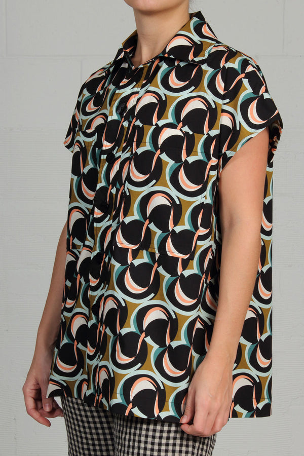 This tunic-like top can be worn as a top, as a light jacket, open, closed, belted,... have fun and make it your own! *Cotton Print - 100% cotton *Washing Instructions: Hand wash cool, hang dry *Runs true to size *Made in Canada...