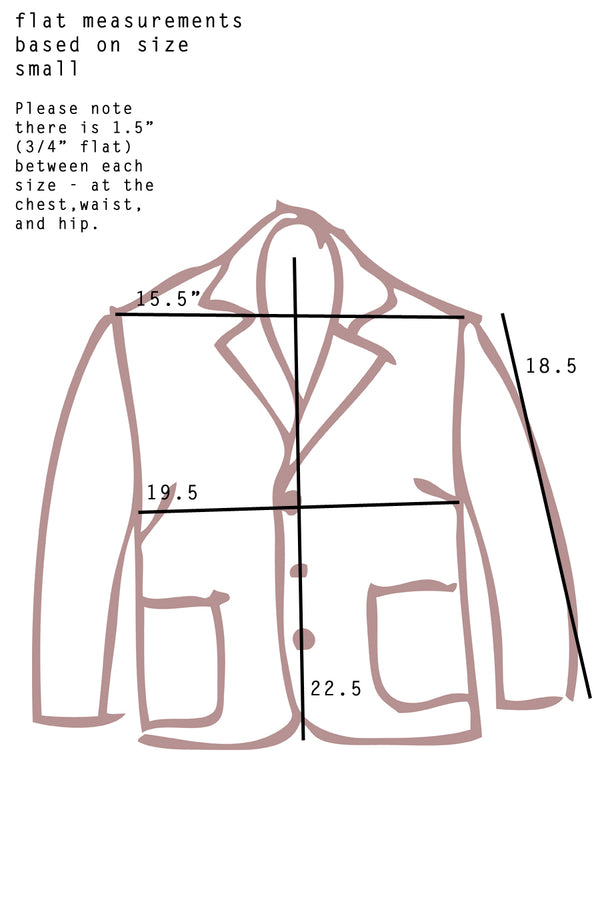A boxy jacket with 3/4 sleeves. If you don't have one yet then this is the one! *Floral Jacquard - 100% polyester *Washing Instructions: Hand wash, hang dry *Runs true to size *Made in Canada
