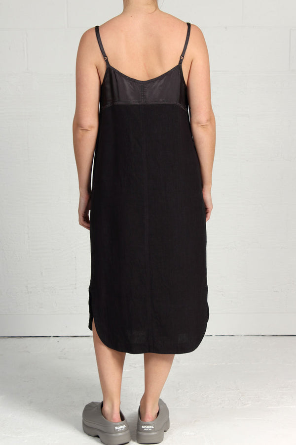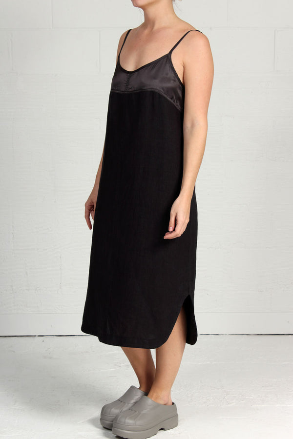 We like our slip dresses...This slip hangs from the shoulder with a shirt tail hemline. The acetate bodice is a nice contrast to the organic texture of the hemp and we think you'll like it as much as we do....