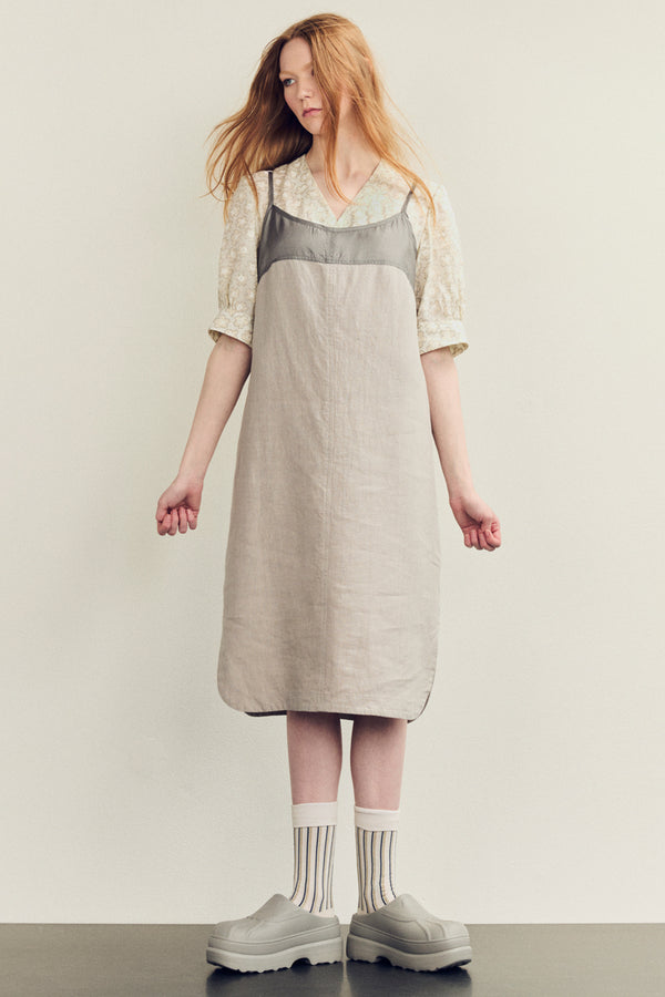 We like our slip dresses...This slip hangs from the shoulder with a shirt tail hemline. The acetate bodice is a nice contrast to the organic texture of the hemp and we think you'll like it as much as we do....
