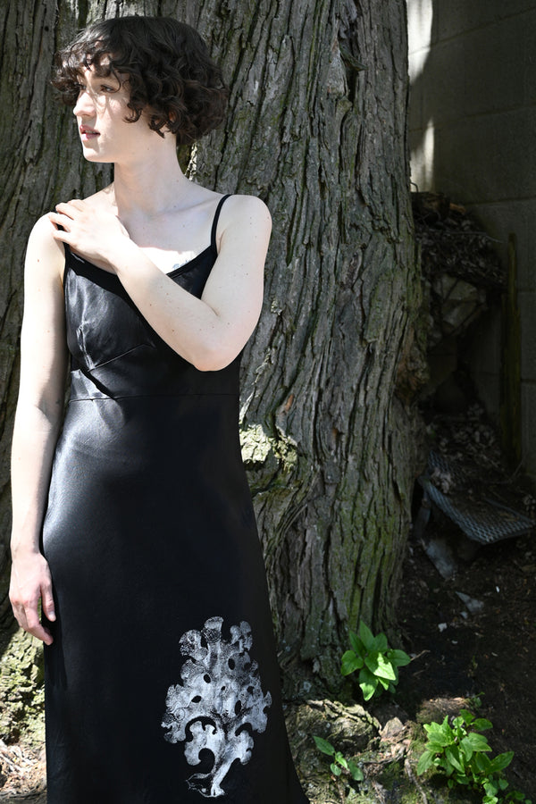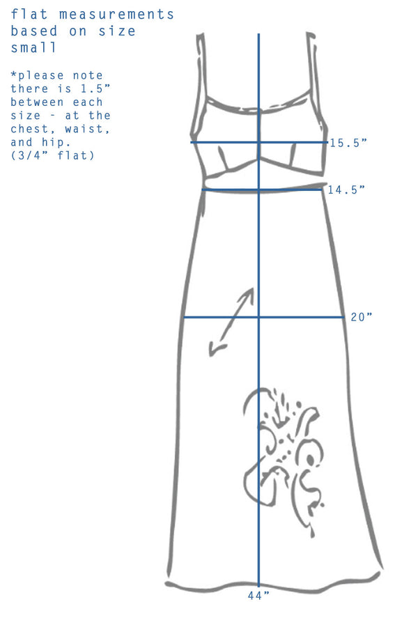 A bias cut slip with adjustable straps and a silk-screened print. Washed and worn looking - it reads as vintage Comrags ;) ! *Matte Satin - 49% acetate, 51% viscose *Washing Instructions: Hand wash, hang dry *Please do not rub print when...