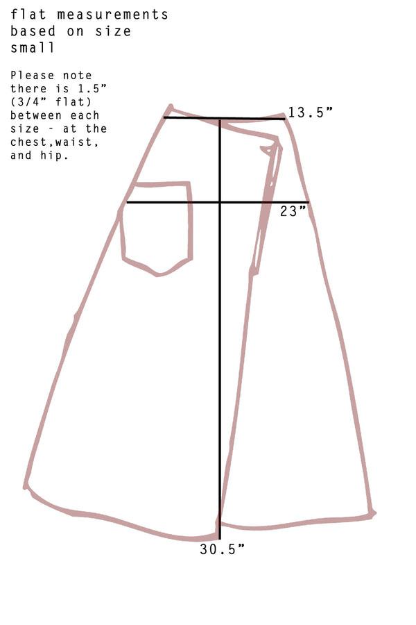Dramatic and sculptural - in a beautiful fabric/print from our past! A zip/wrap front with a bustle in the back.   *Prints - 99% cotton, 1% spandex *Washing Instructions: Hand wash, hang dry, press *Runs true to size *Made in Canada
