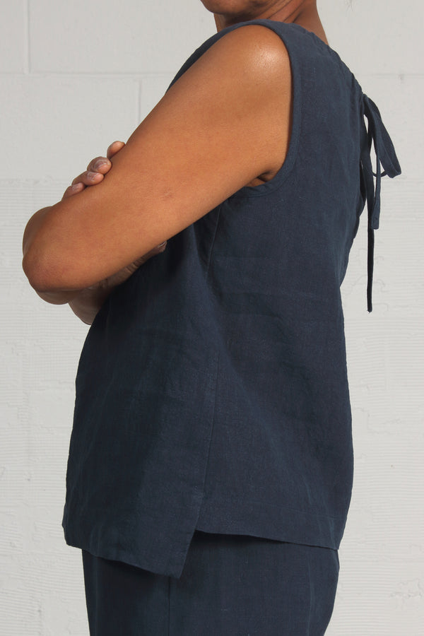 A simple and straight top with a drawstring neckline. Adjust the gathers to wear it loose or pulled in. *Rumpled Linen - 100% linen, garment washed *Washing Instructions: Hand wash or machine cool/gentle, hang dry or dry clean *Runs true...