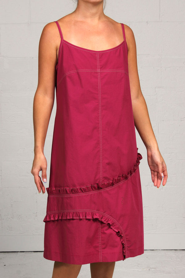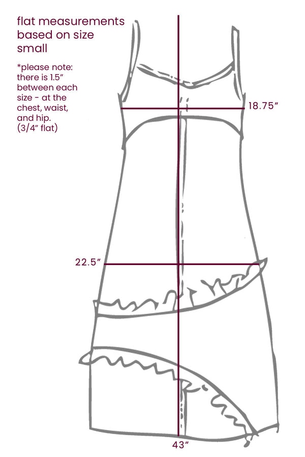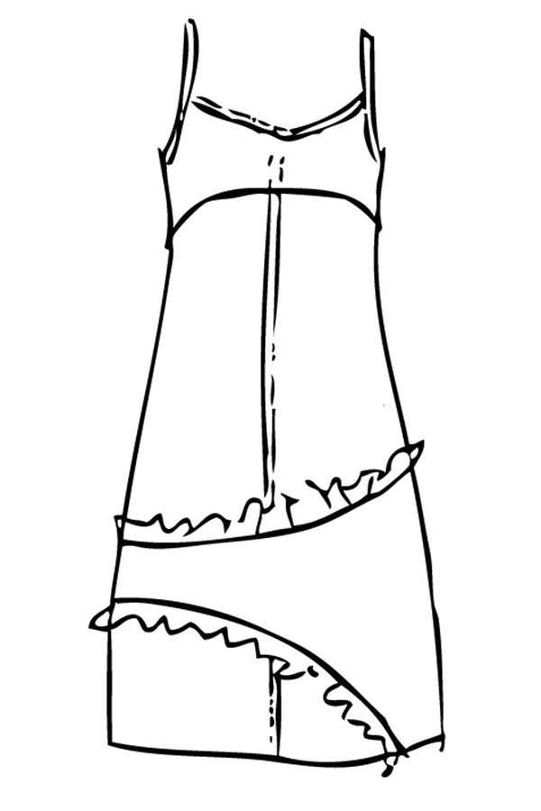 This slip of a dress has some crazy ruffles! The straps have adjustable slides and contrast top stitching. *Solid CottonsĀ - 100% cotton *Washing Instructions: Cool gentle machine wash or hand wash, hang dry *If you are between sizes we recommend...